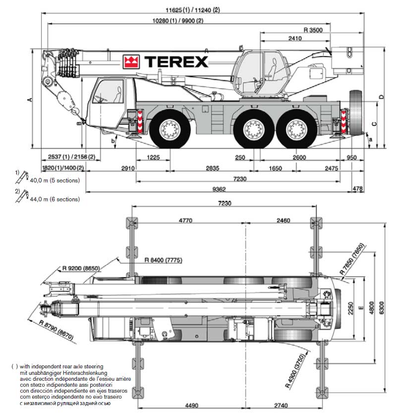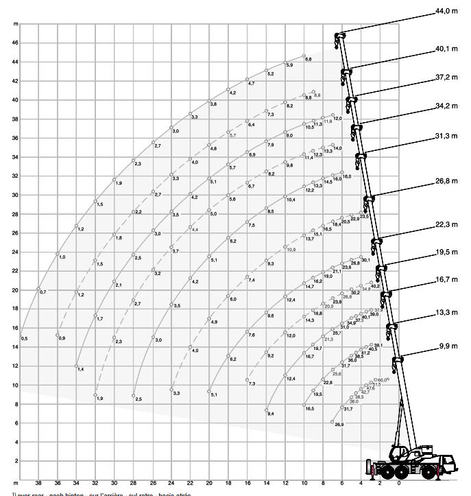Tří nápravový kompaktní jeřáb klasické konstrukce s 46 m dlouhým výložníkem, který může přesunout břemena až do maximální váhy 60 tun.